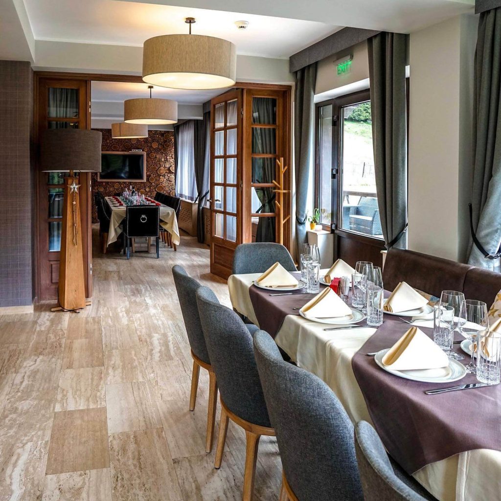 Gastronomie: Restaurant propriu specializat în preparate din carne de vânat (mistreț, cerb, cocoș de munte) și produse obținute din surse locale (ferma Ciobănaș de Moroieni).