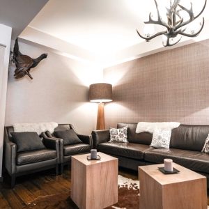 Clasificare și Arhitectură: Capacitate de cazare de 13 camere și 2 apartamente (clasificare 5 margarete). Arhitectura și designul interior combină stilul chalet-ului elvețian cu elemente specifice unei cabane vânătorești tradiționale (lounge cu șemineu și exponate de vânătoare).